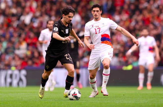 下半场开始后,亚美尼亚换上两名前锋,葡萄牙的进攻受到的阻力更小了。第53分钟,和贡萨洛·拉莫斯打出撞墙配合后,B费不停球直接射门,梅开二度。