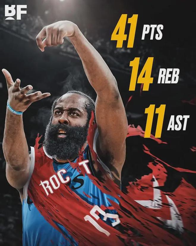 本赛季哈登首发出战14场比赛,场均出战35.8分钟,得到26.5分6.2篮板8.6助攻1抢断0.5盖帽3.9失误,三项命中率:44%,38.2%,91.3%。哈登场均得分创造了自2019-20赛季以来个人新高,也是他离开火箭之后的新高。