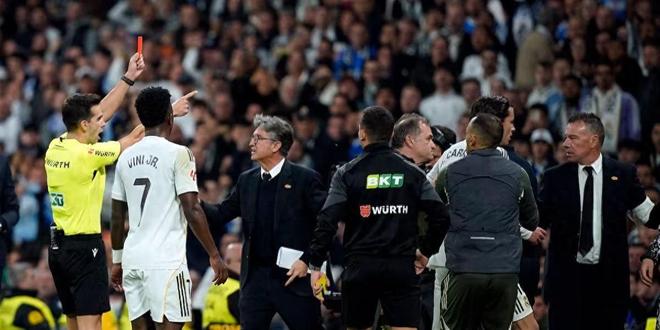 北京时间12月8日凌晨,西甲第15轮,皇家马德里在伯纳乌0-2不敌维戈塞尔塔。然而,比比分更令人震惊的是比赛内外接连爆发的混乱场面——全场比赛共出示3张红牌,冲突甚至蔓延至终场哨响后的球员通道。主裁判金特罗·冈萨雷斯在赛后报告中明确点名卡雷拉斯、恩德里克和卡瓦哈尔三人,西班牙足协纪律委员会已介入调查。