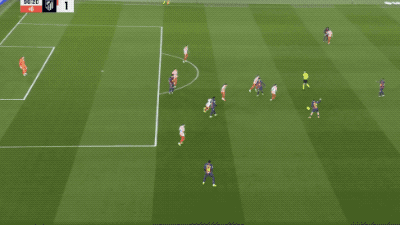 第18分钟,巴萨防线前压,造越位再次出现失误, 巴埃纳冷静单刀破门,VAR介入,进球有效,巴萨主场落后。